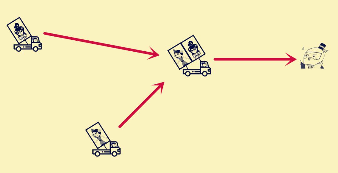 话是这样说,但是就是这个“捏在一起”的动作本身,就是个高难度的。我们还用快递来打比方,假设有一个从乌鲁木齐寄到你家的包裹,还有一个成都寄到你家的包裹。“PK”就相当于他们两个要在运输的路途中被放进同一辆卡车,然后同时交到你的手上。