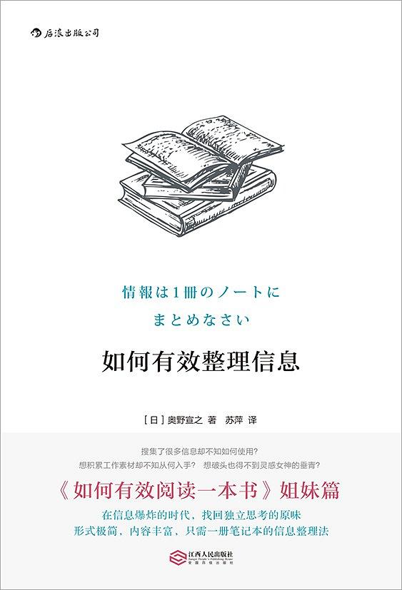最近读到一本书,叫《如何有效整理信息》。作者奥野宣之,曾在出版社和报社工作,他独创的信息整理术和智慧创造法在商务人士中很受欢迎,在利用新闻出版经验进行网络与杂志专栏撰稿人的工作之外,他还以“笔记本作家”的身份活跃在媒体节目和论坛中。在这本书里,作者从他的经验谈起,强调使用“一元化笔记法”来记笔记,同时还介绍了很多如何将笔记内容进行知识产出的小方法,手把手教读者如何有效地整理信息。