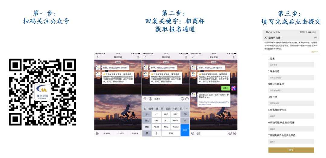 无论您是招商局集团内部员工,还是外部创新团队或个人,只要您的创意符合大赛主题,都欢迎报名参赛。想要让自己的创意获得与招商局集团交通板块产业公司资源对接的机会?报名通道现已开启,仅需三步: