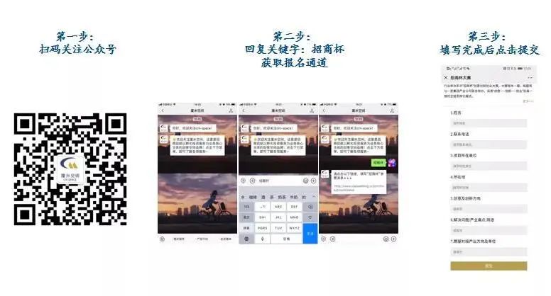 无论您是招商局集团内部员工,还是外部创新团队或个人,只要您的创意符合大赛主题,都欢迎报名参赛。想要让自己的创意获得与招商局集团交通板块产业公司资源对接的机会?报名通道现已开启,仅需三步: