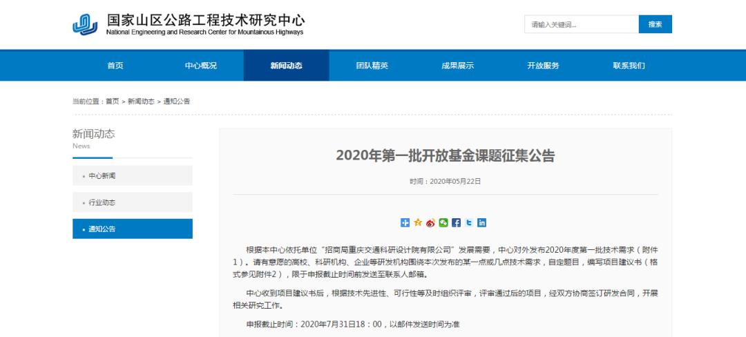 招商局重庆交通科研设计院有限公司通过“招商杯”创意创新创业大赛、国家山区公路工程技术研究中心同步官方发布产业技术需求,涉及道路工程、桥梁工程、隧道工程、交通工程等多个领域。