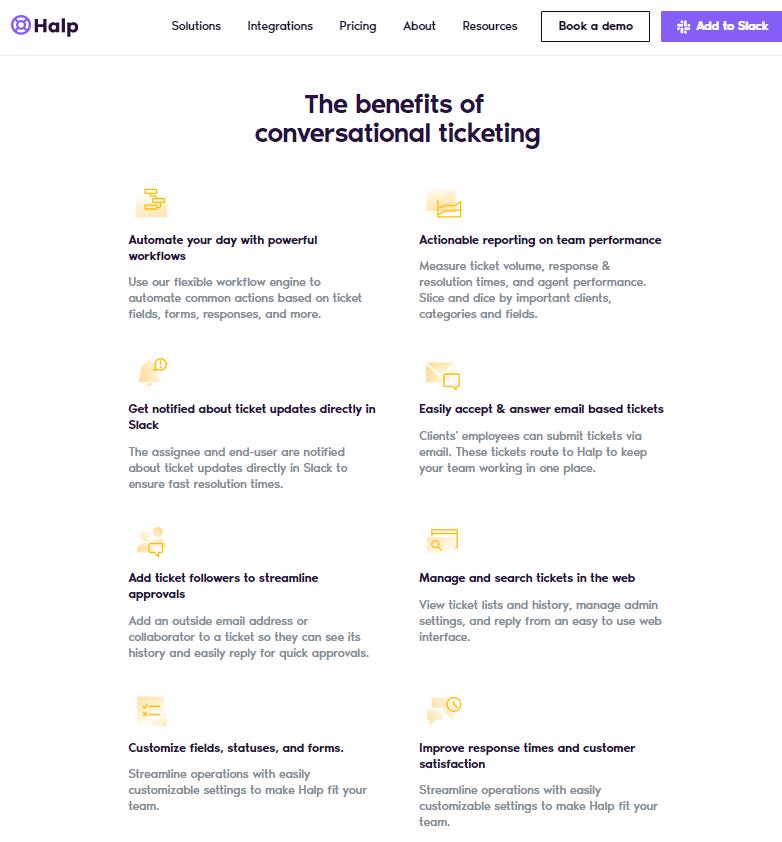 Halp“coversational ticketing”的价值陈述