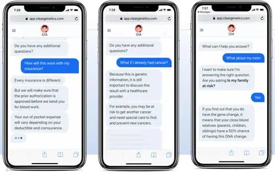 Clear Genetics的聊天机器人GIA界面示意图