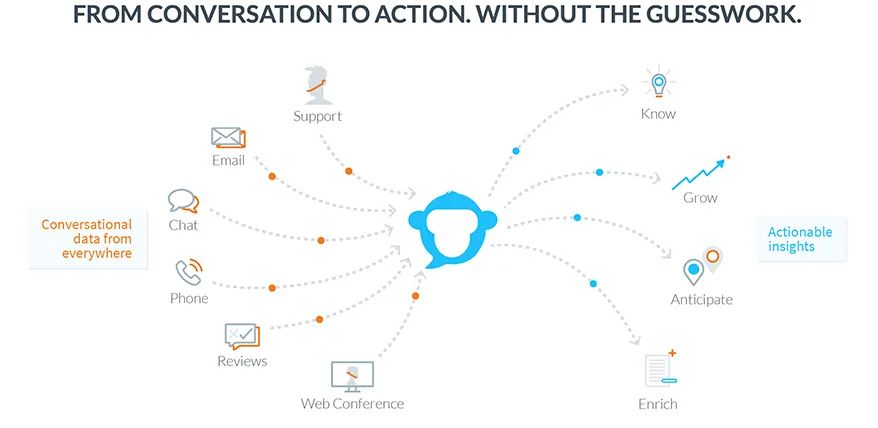 就发展最成熟的智能客服来说,与之关系最密切的要属CRM系统,因此CRM大平台也成为对话式AI项目的重要收购方,这类收购早在chatbot 2016年就有频繁发生,一直持续至今。