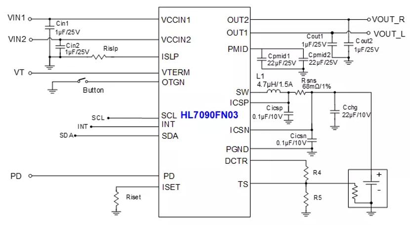 如今,TWS技术运用于蓝牙耳机上已经掀起了一股潮流。TWS耳机仓带有Charge和Boost功能,一些客户采用分立器件来搭建方案,这样整个系统设计占用了较大的PCB面积,同时系统的效率相对较低。针对此情况,去年九月份「希荻微」推出了HL7090——集成降压充电和Boost升压的专用SOC芯片,使得TWS耳机仓只需一个芯片就能满足其功能需求。该芯片适用于充电仓控制,最大支持900mA充电电流,双通道升压输出,每通道输出最大100mA。