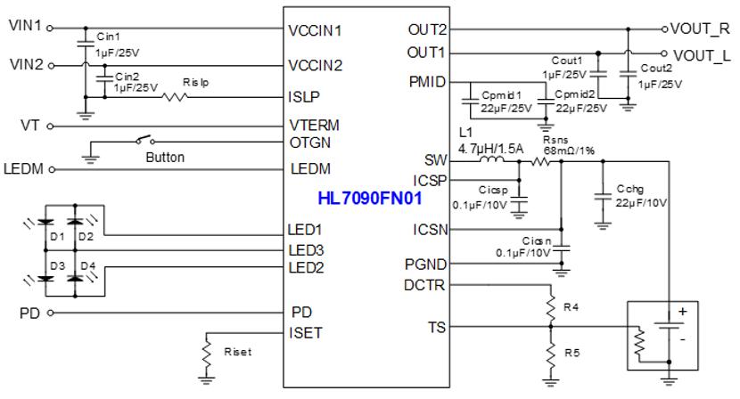 根据公开信息获得的HL7090分为LED版本和I2C版本下面两张图分别为LED版本以及I2C版本的原理图: