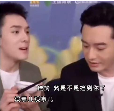 过程中,黄晓明发现自己把李佳琦挤出了屏幕外,于是自觉地往右边挪了下,李佳琦礼貌地回复说:“没事儿没事儿,大家都是来看你的”......黄晓明小小声说了句:“不不不,大家不喜欢看我”,言语中显得有些自卑。