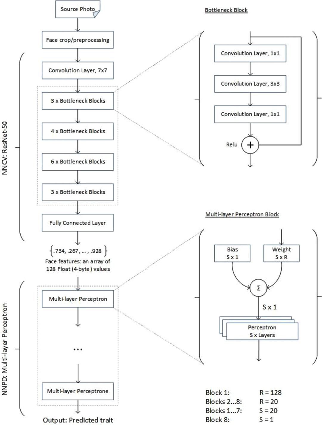 计算机视觉神经网络和个性诊断神经网络(NNPD)的层体系结构如下图所示:
