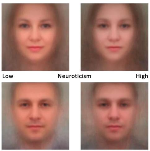 在神经质的标签下,一个人的面相变化如下图所示,可以想见,他们会遇到更多的心理健康问题,也更需要朋友和亲人的支持。
