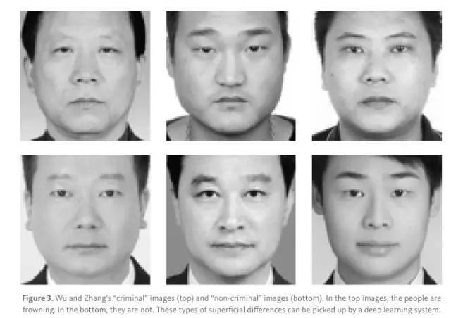 更早的例子发生在2016年,上海交通大学武筱林和张熙在预印本网站上发表论文《使用脸部图像自动推断罪犯》(Automated Inference on Criminality Using Face Images),在论文中,吴和张指出,机器学习技术可以预测一个人是否是犯罪分子(不是犯罪嫌疑人),准确度几乎可以达到90%,他们使用的数据仅仅是证件照片。