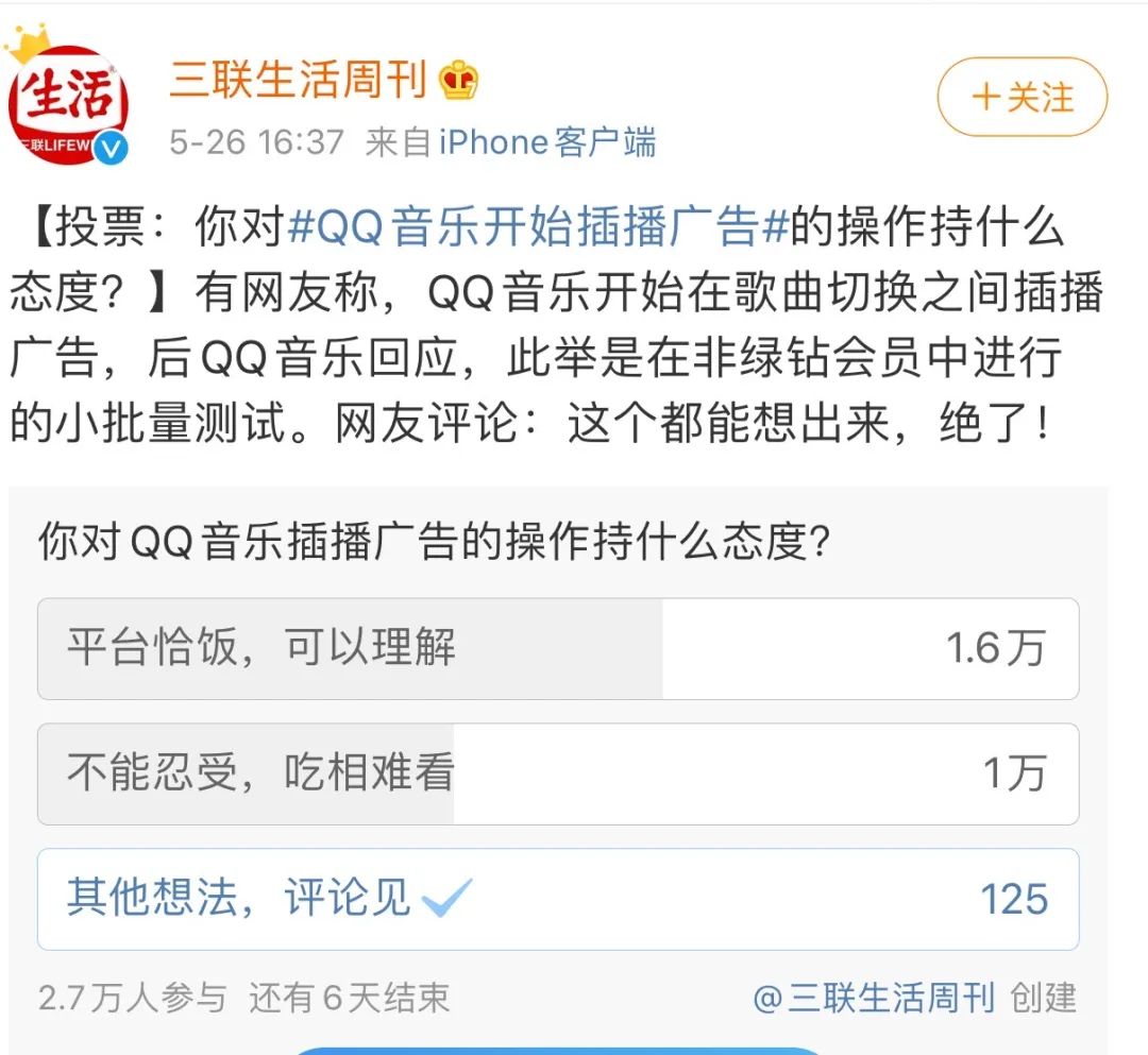 说实话,针对QQ音乐在歌曲播放过程测试语音广告,我并不感到意外。而网友在这件事的反应,也实属意料之中。