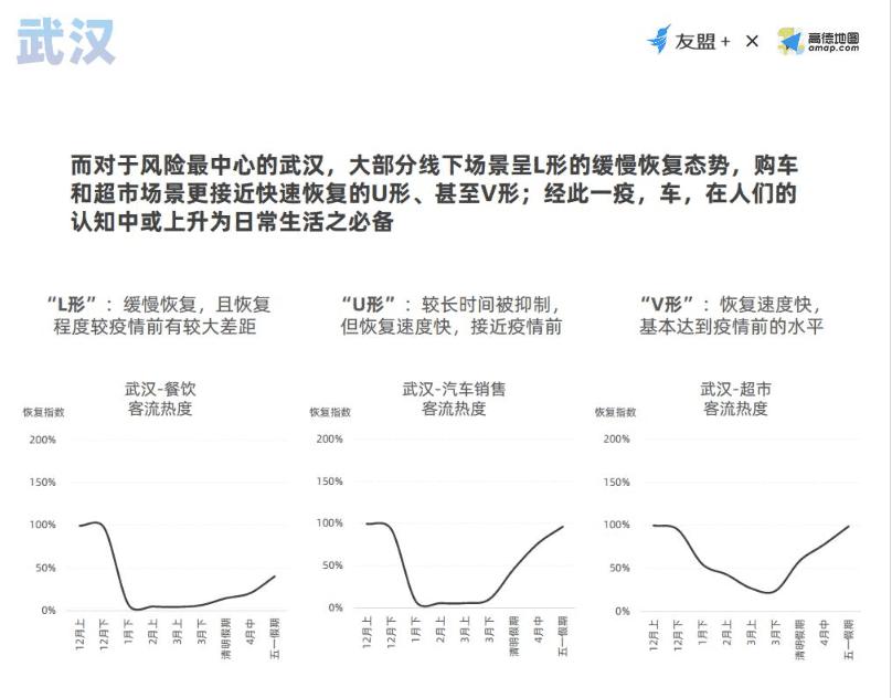 最近不断有好消息从武汉传出,绝大部分线下场景都在明显回暖,以超市为代表的生活必须品接近快速反弹的V形,公园景点等户外娱乐场景也呈现解禁后回升速度较快的U形。餐饮、办公、出行等大多数场景呈现缓慢恢复的态势。