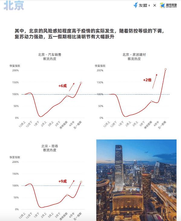 尽管在恢复进度上都有滞后,但两个城市之间存在着本质的差异。此次疫情不同于非典,北京的风险感知程度高于新冠疫情的实际发生,随着防控等级的下调,复苏动力强劲,五一假期相比清明节有大幅跃升,体现了不俗的消费力和消费意愿。
