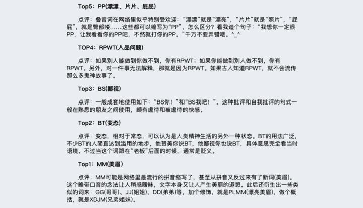 让我们把时间调整到 16 年前,2004 年,《电脑报》发布过一篇名为「网络菜鸟必须之拼音缩写用语 Top10」的文章,「BS」、「BT」、「MM」位列前三,相信很多 80、90 后会看着这几个缩写微微一笑,但这些曾经流行,如今略显土气的网络用语,看起来真是别有一番风味。