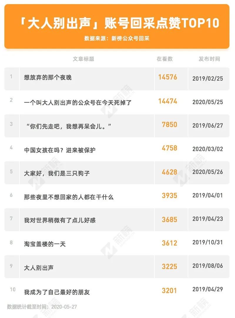 5月25日,账号后台的两百万粉丝收到了一篇陈述理想主义与痛陈现实困境的告别信:《一个叫大人别出声的公众号在今天死掉了》。