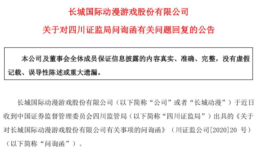 值得一提的是,长城动漫在今年4月23日收到深交所发出的关注函,5月22日又收到四川证监局的问询函,两份监管函均对其休假超过半年、最后辞职“一走了之”的时任董秘及涉及的相关工作表示了关注。