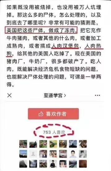 比如,他说,美国把尸体,做成冻肉给民众吃。