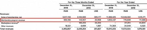 从财报来看,云集2019财年Q4的会员项目收入为1.46亿元,较2018财年同期的9.3亿元下降84.30%;2019财年全年的会员项目收入为7.77亿元,较2018财年同期的15.52亿元下降49.94%。云集的会员收入增长呈现下滑趋势。