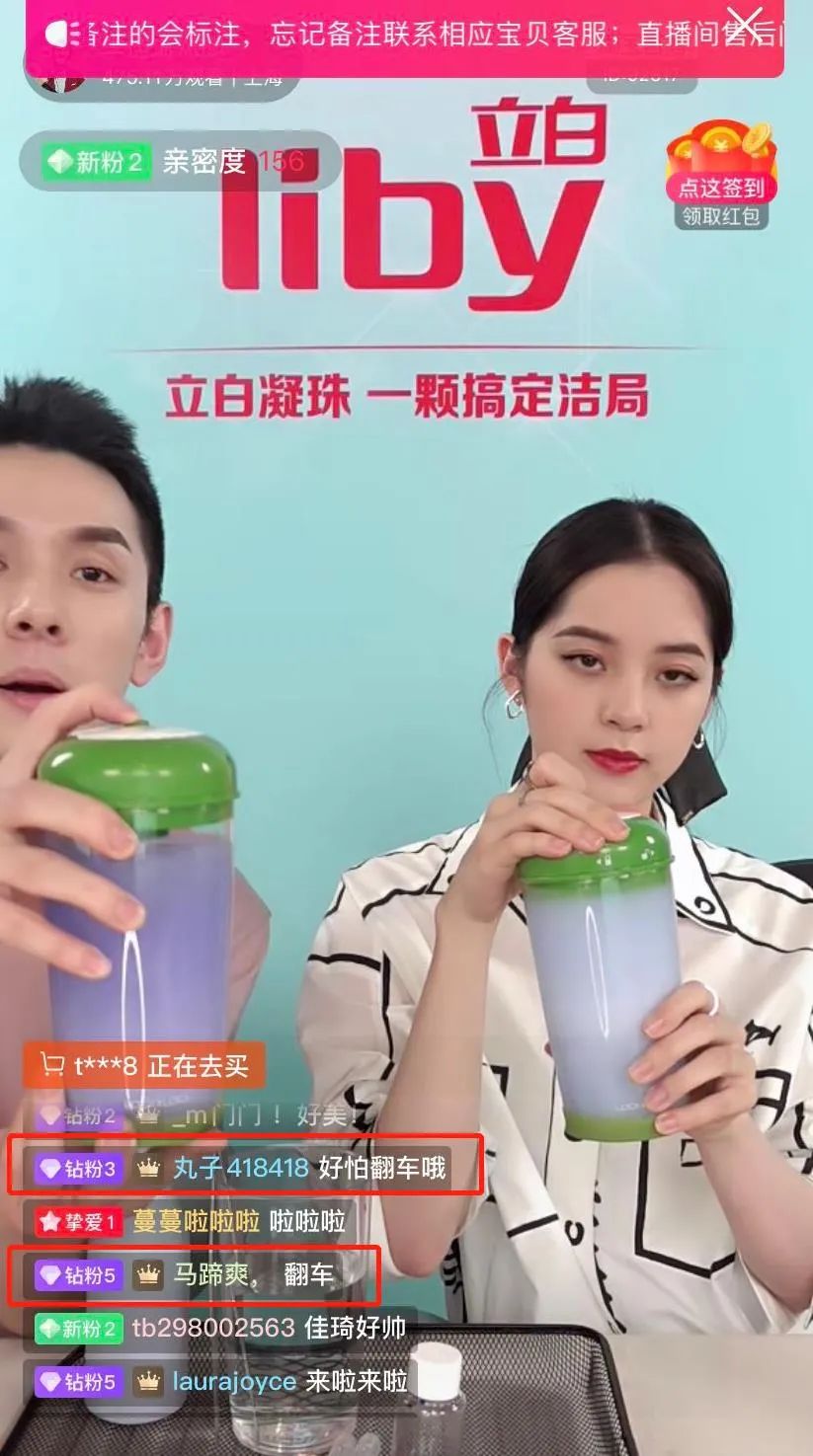 也许是有过前车之鉴,打那次翻车后,每当李佳琦摆上做实验的小桌,粉丝就开始“提心吊胆”。就在最近与欧阳娜娜的直播中,李佳琦进行对照组实验,以测试洗衣凝珠的护色效果,弹幕齐齐刷起了“翻车”预警。