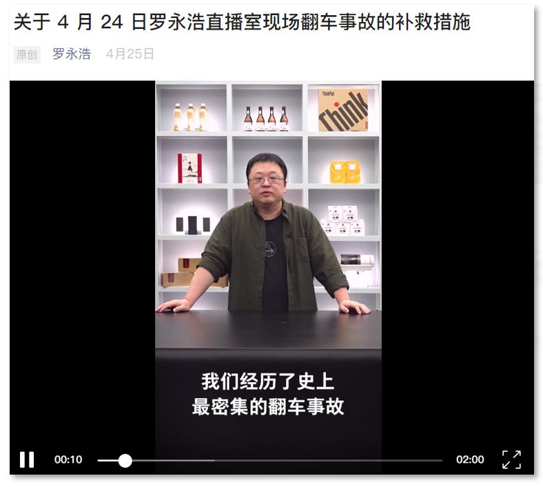 最后,来说说道歉的方式。红人、品牌的常见做法是在微博、官网发公告,也有人选择接受权威媒体采访,借用媒体影响力增强回应力度。但这些可能是最头部的红人、品牌的做法,对普通红人来说,罗永浩的操作可能更有借鉴价值。