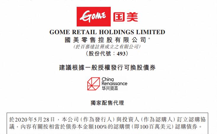 京东战略投资国美:以1亿美元认购国美零售发行的境外可转债