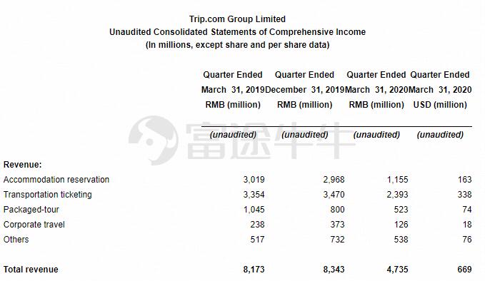 $携程网(TCOM.US)$今天发布了Q1未经审计的财务业绩。财报显示,携程网第一季度净营业收入为人民币47亿元,与去年同期相比下降42%,与上一季度相比下降43%;归属于公司股东的净亏损为人民币54亿元,去年同期净利润为人民币46亿元,上一季度为人民币20亿元。