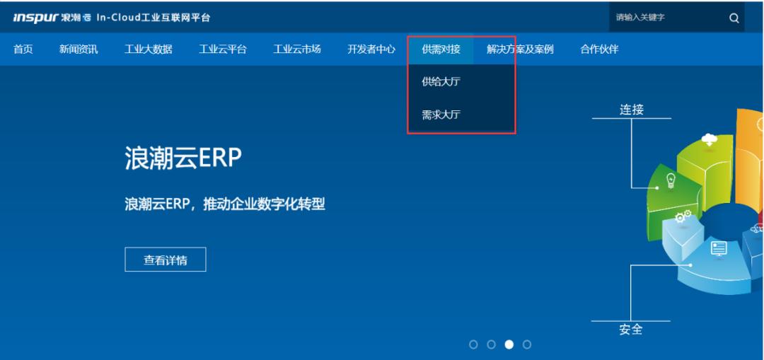 所以,现在市场上知名的工业互联网平台都开始有意识的做好这一点。比如,海尔COSMOPlat工业互联网平台在为客户提供全流程服务的基础上,重点推出“智慧供应链”来帮助企业对接生态资源,解决采购-销售一系列的问题;而浪潮云In-Cloud工业互联网平台更加直接,直接在官网开设两大栏目,即“供给大厅”和“需求大厅”,来引导客户进行采销资源整合,等等。