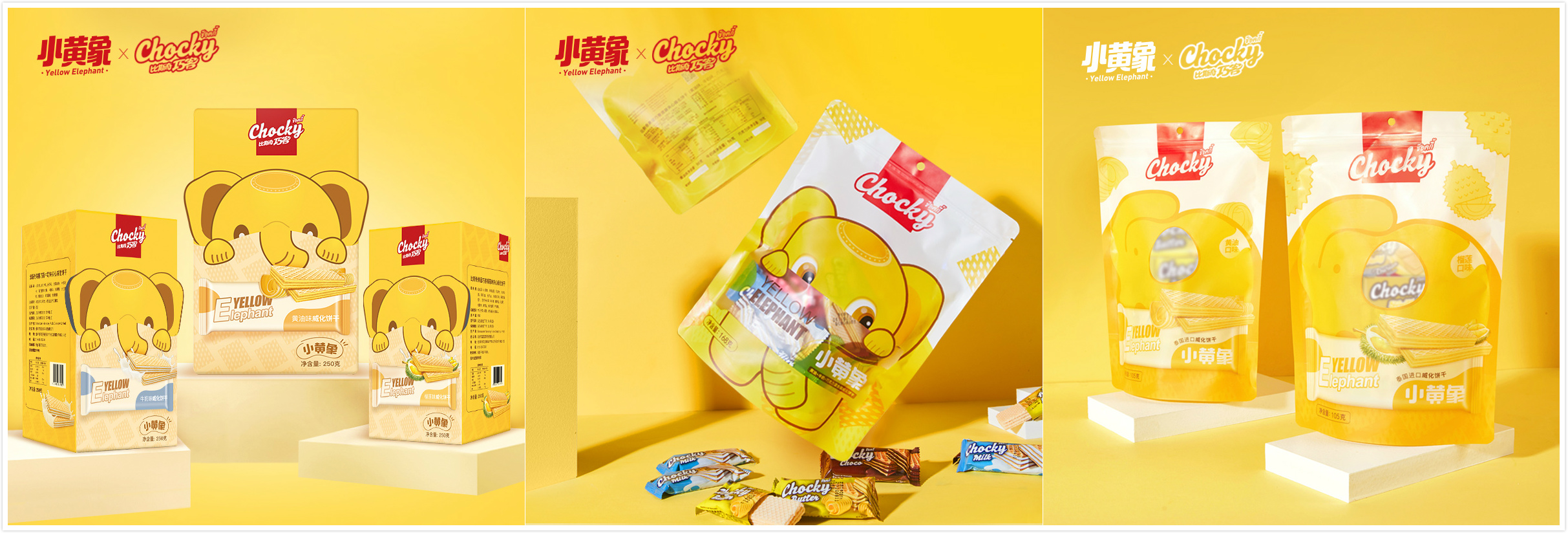 小黄象推出的品牌首款产品是威化饼干,通过与泰国知名休闲食品公司S.N.N.P合作,原材料精选澳洲黄金小麦、泰国原生态奶源、新西兰/日本札幌进口天然牛乳黄油,通过低温烘焙工艺以及独有黄油工艺制作完成,完全无反式脂肪酸、无防腐剂、无代可可脂,并推出了牛乳黄油味、札幌黄油味、北海道牛奶味、醇牛奶味、香浓巧克力味、恋恋榴莲味、泰香椰子味、泰式芒果味等多种风味组合。