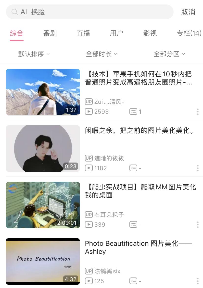 我们在今天用 AI 换脸这一关键词,分别在抖音、快手和 bilibili 上用 AI 换脸、换脸、Deepfake 三个关键词,进行了搜索。