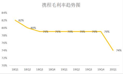 另外,携程Q1毛利率下滑到74%,而之前几个季度一直稳定在79%。