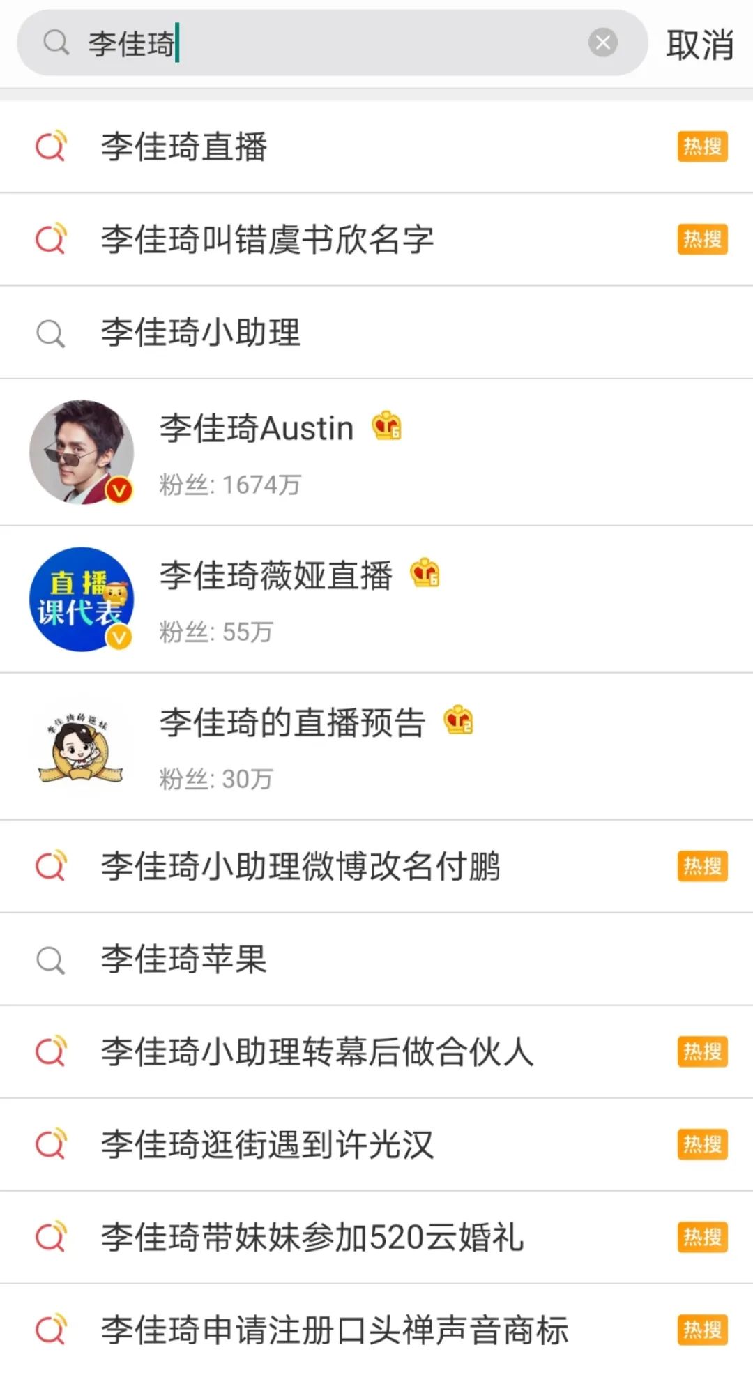 李佳琦相关热搜,图源微博