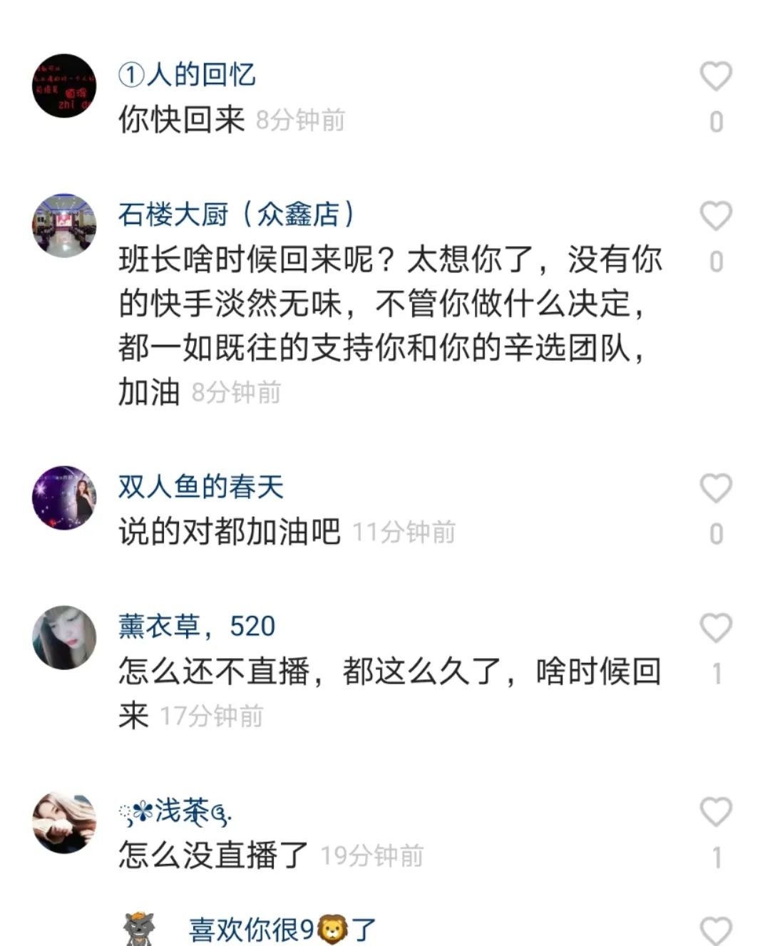辛巴最后一条动态中的留言区,图源快手