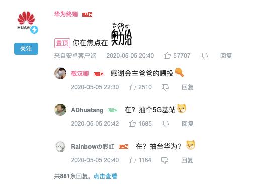 华为终端官方账号也来到这条视频下方评论留言:“你在焦点在奥利给!”