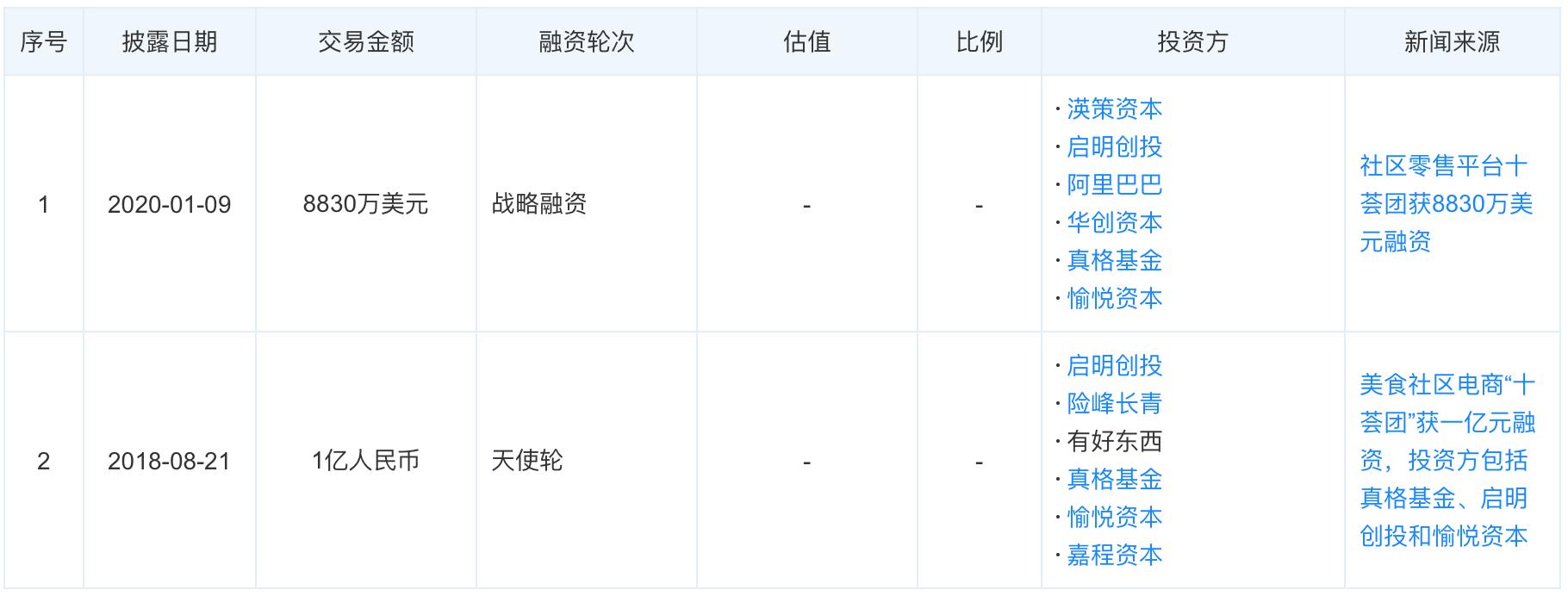 十荟团是社区团购行业首个跑进C轮的玩家。成立近2年,十荟团已完成四轮融资,金额累计超过亿元美金,大量知名投资机构和明星股东都出现在其投资者名单上。其中阿里巴巴曾二次参投,首次入局为2019年,不过该轮融资目前未仍对外透露相关信息。此外,本轮融资出现的愉悦资本、启明创投、渶策资本等投资机构也都是多次参投。