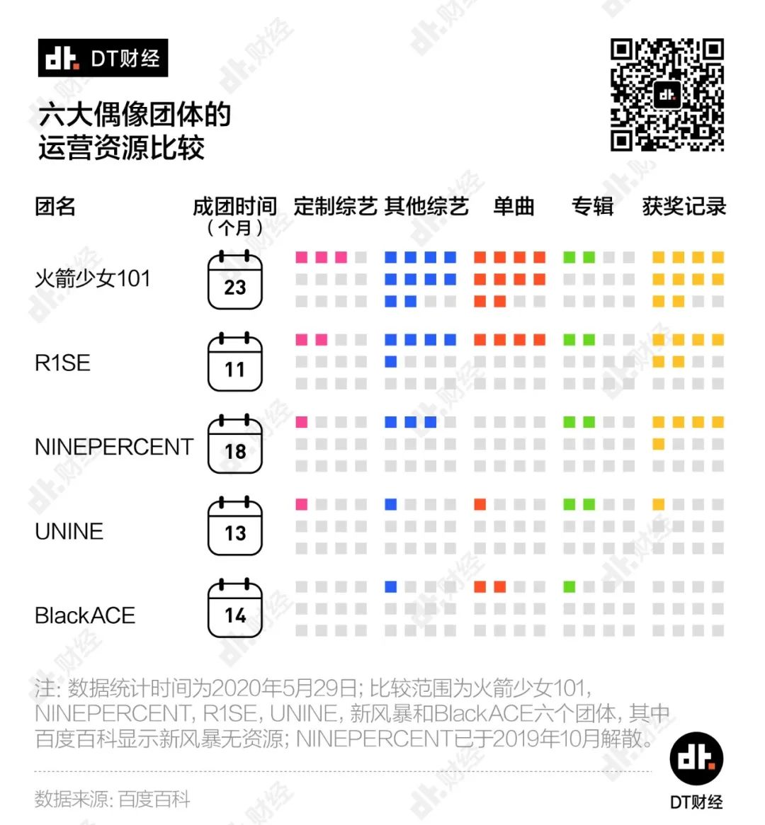 相对而言,其他团体出道后的运营资源就比较惨淡。从优酷《以团之名》中走出的BlackACE,仅在近日参加了腾讯视频的音乐团体竞演节目《炙热的我们》,而这成为他们出道以来唯一合体登上的综艺。