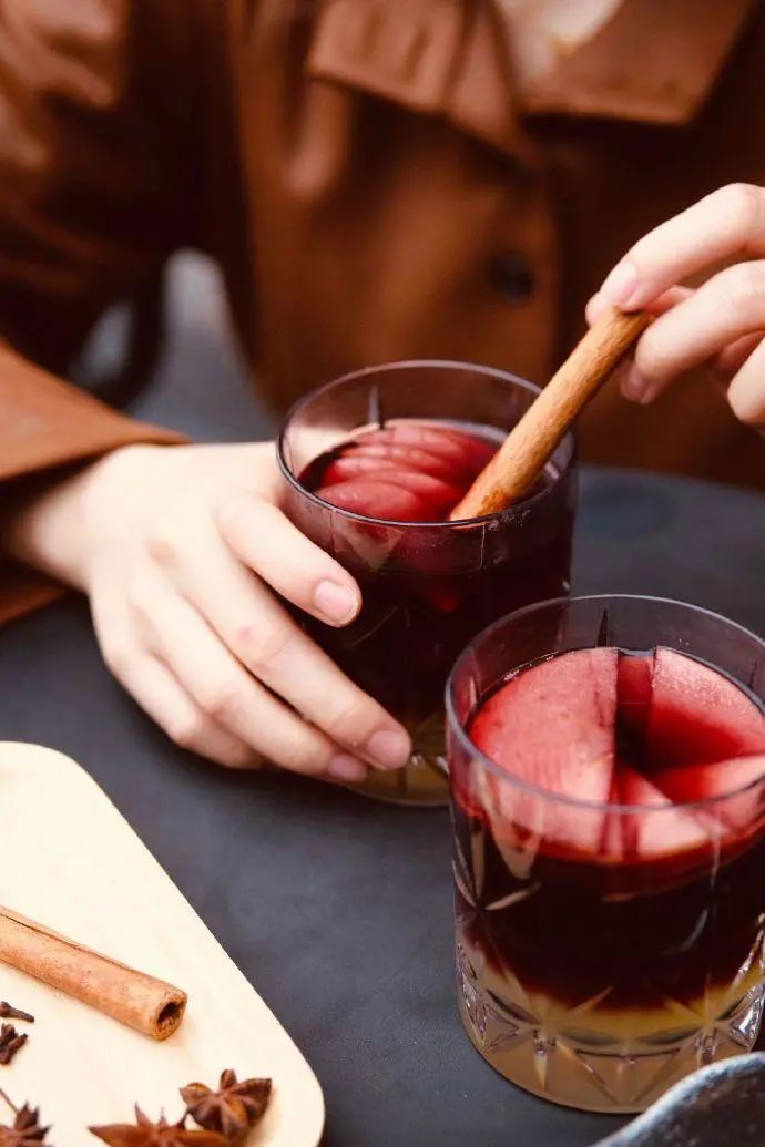 去年冬天,喜茶茶极客推出了“暖夜”:金凤茶王+热红酒+苹果片,红酒与茶在慢慢升温中交织融合,升腾起暖暖白气,酸甜微醺。