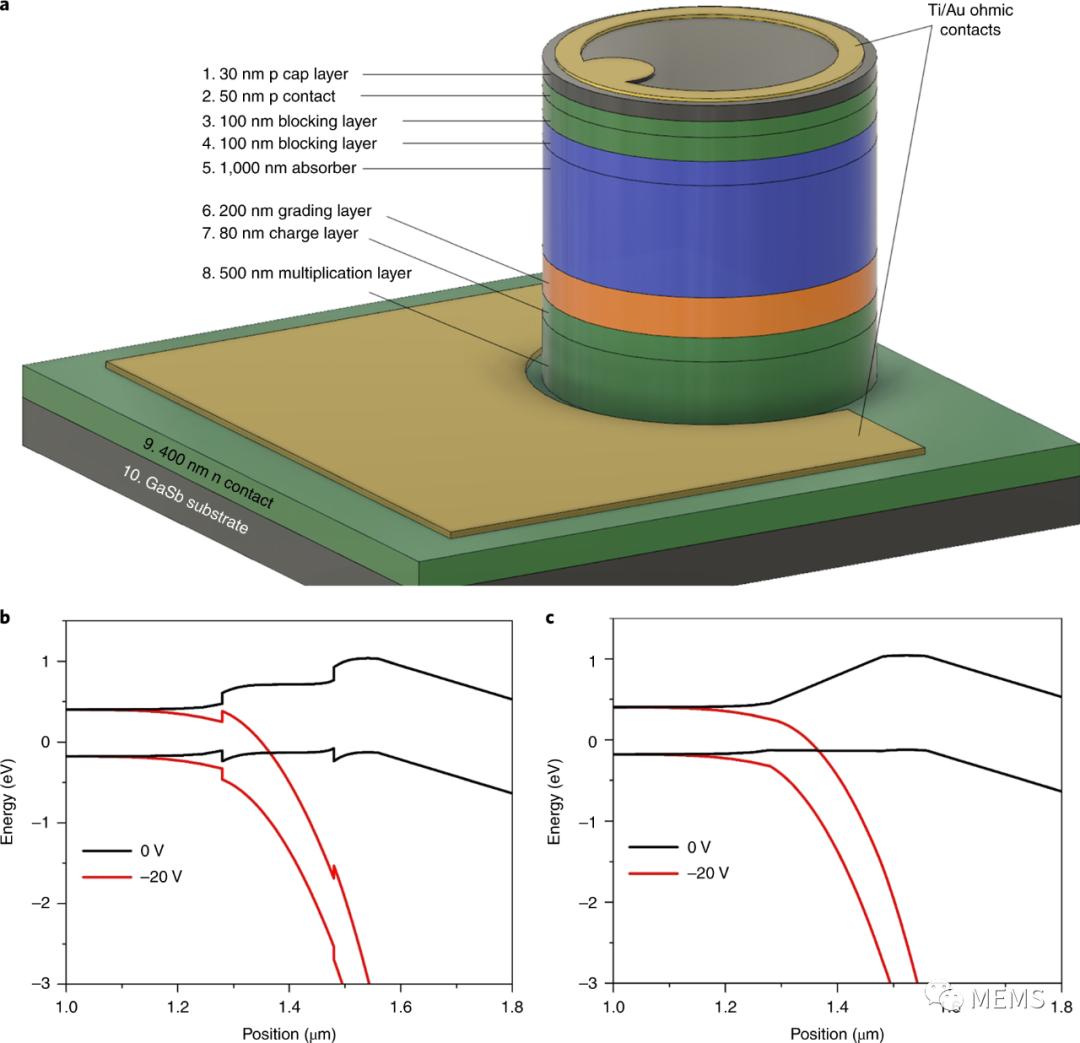 该团队采用了Bank所在先进半导体外延实验室研发的数字合金,其光学性能和电气性能都非常优秀。Bank采用分子束外延技术生长出由铝(AI)、铟(In)、砷(As)和锑(Sb)组成的合金。该合金兼具长波长高灵敏度、超低噪声,并具有现有低噪声APD材料无法实现的低暗电流设计灵活性。