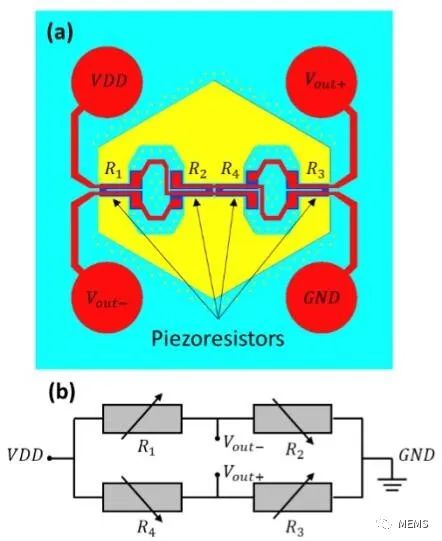 压敏电阻布局及用于压力传感的惠斯通电桥