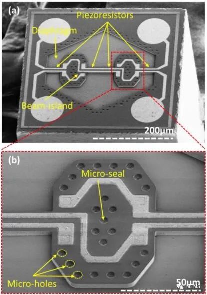 利用无疤痕微创手术工艺制造的绝对压力传感器芯片SEM图