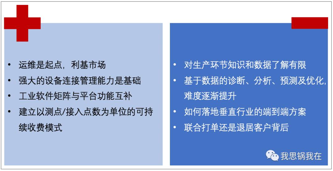 另外一面,中国制 造业众所周知“大而不强”,参差不齐的信息化基础、特殊的商业环境和传统的付费习惯都成为IoT平台和创新应用在落地时的障碍。未来有机会我会展开探讨。