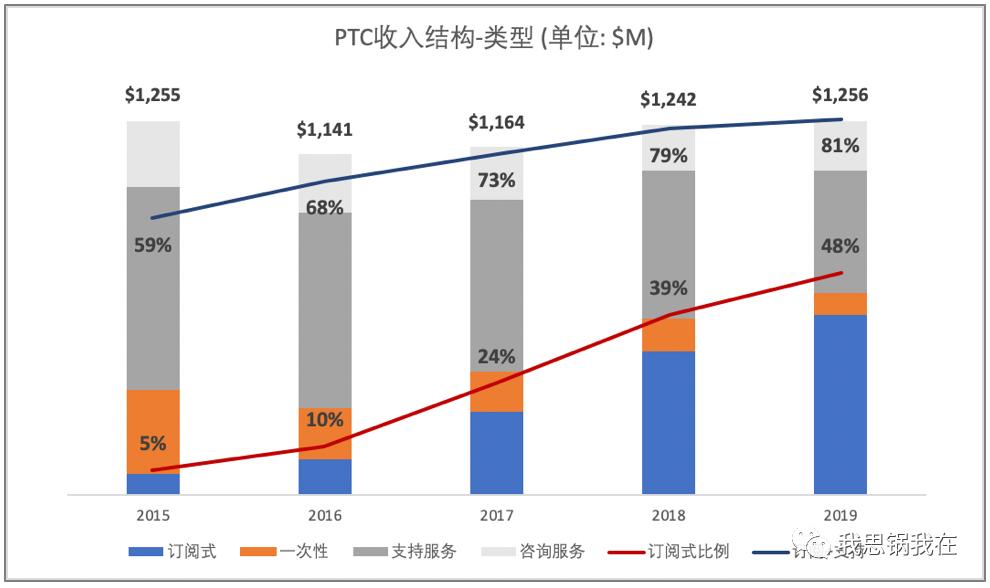 回到上面的转型路线图,PTC从2014年开始做了两大改变: