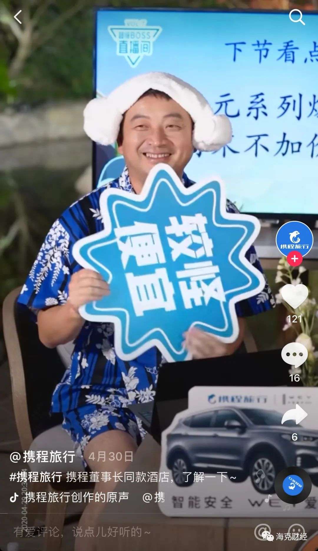 对,在这里我们暗戳戳提到的就是携程董事长梁建章先生了。目前,网上对他直播的讨论已经从最初的猜测携程是不是遇到极大困难了,演变到了如今猜测James宝宝(主持人给梁建章起的艺名)下次会cosplay个什么造型了。