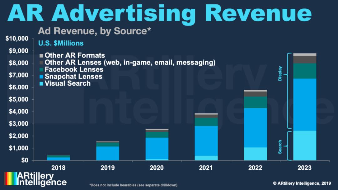 注:AR广告的互联网平台受益情况分布与预测 (来源:ARtillery Intelligence)