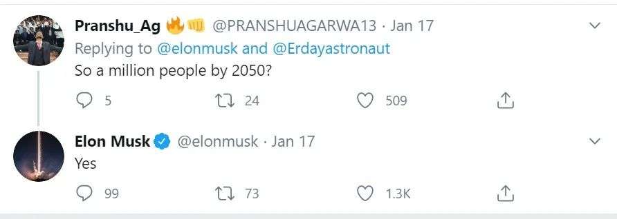 Starship稳步推进之下,马斯克大胆给出了火星登时间表。如果开发和测试进展顺利,星际飞船第一次搭载100名乘客的火星发射任务最早可能在2020年代中期完成。而到2050年,马斯克计划让100万人登陆火星。