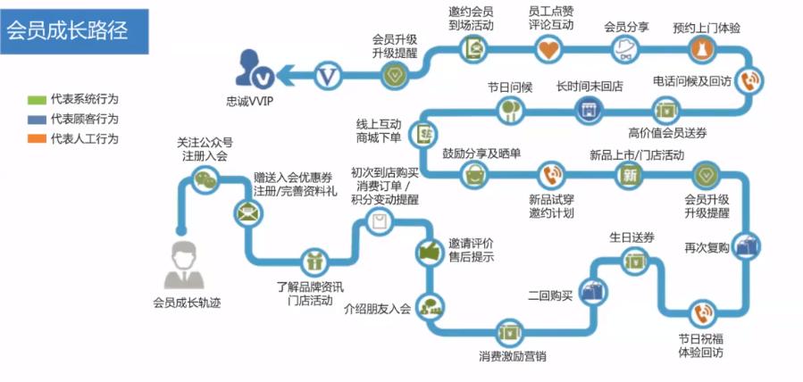 至于如何落地会员体系,我们需要一个全局的作战地图,这就是会员体系成长路径图。大家可以参考下图。