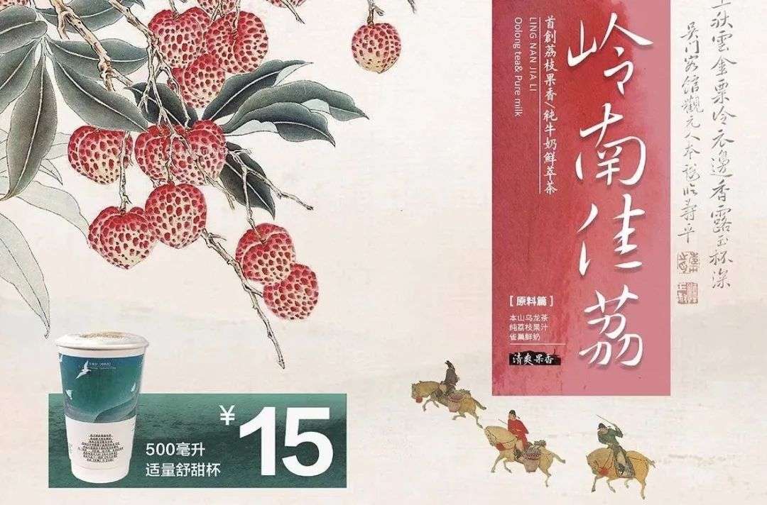 茶颜悦色去年在小范围公测后,也推出了荔枝系列饮品岭南佳荔。