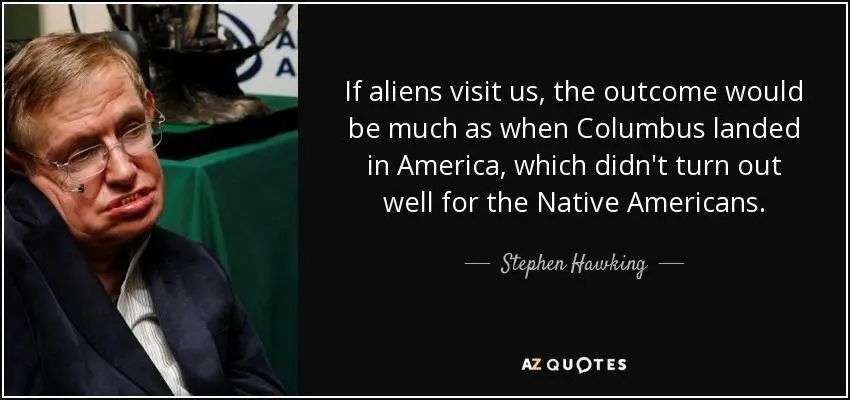 「外星人与人类相遇的结果就像哥伦布发现新大陆,从此便开始了永无止境的杀戮和掠夺,最终将人类消灭,将地球资源占为己有。」