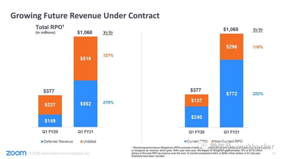 事实上,消费者或者小企业客户的涌入,甚至改变了Zoom的计费组合。因为这些客户通常按月付款,而不是像大多数企业客户那样按年付款。