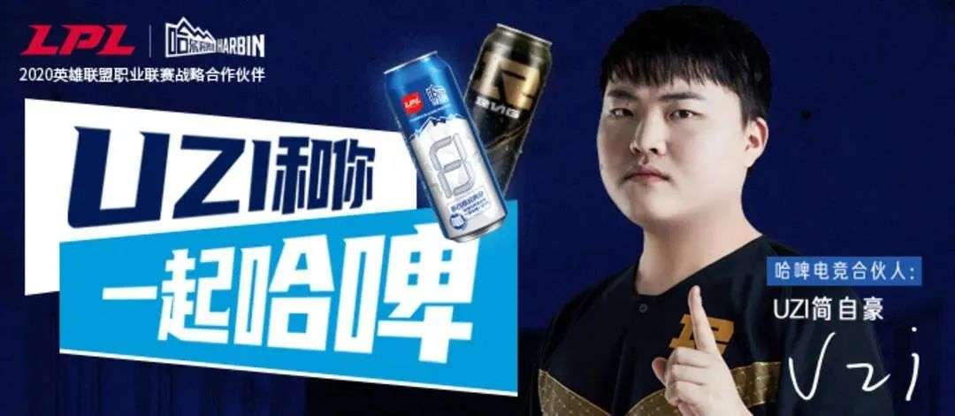 而除了NIKE之外,Uzi也收到了像Bubuis这样的高级手表品牌的青睐。就在宣布退役前不久,Uzi的「代言库」里又多了一个品牌:哈尔滨啤酒。作为电竞营销的老手,哈尔滨啤酒官方宣布,Uzi将作为品牌的电竞合伙人。