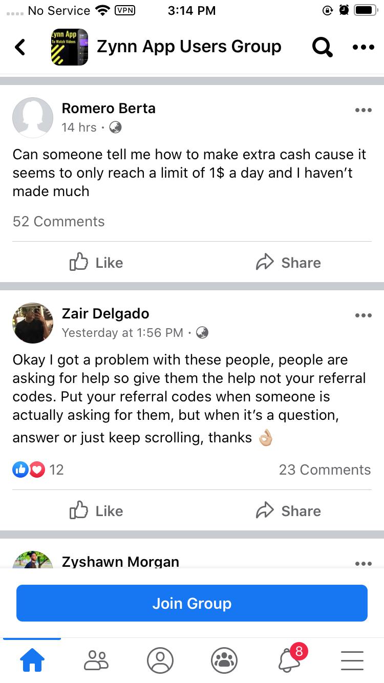 在Facebook的“Zynn App Users Group”里,目前已经有将近三千位成员,不少用户都在其中提问“怎样才能赚额外的钱?”